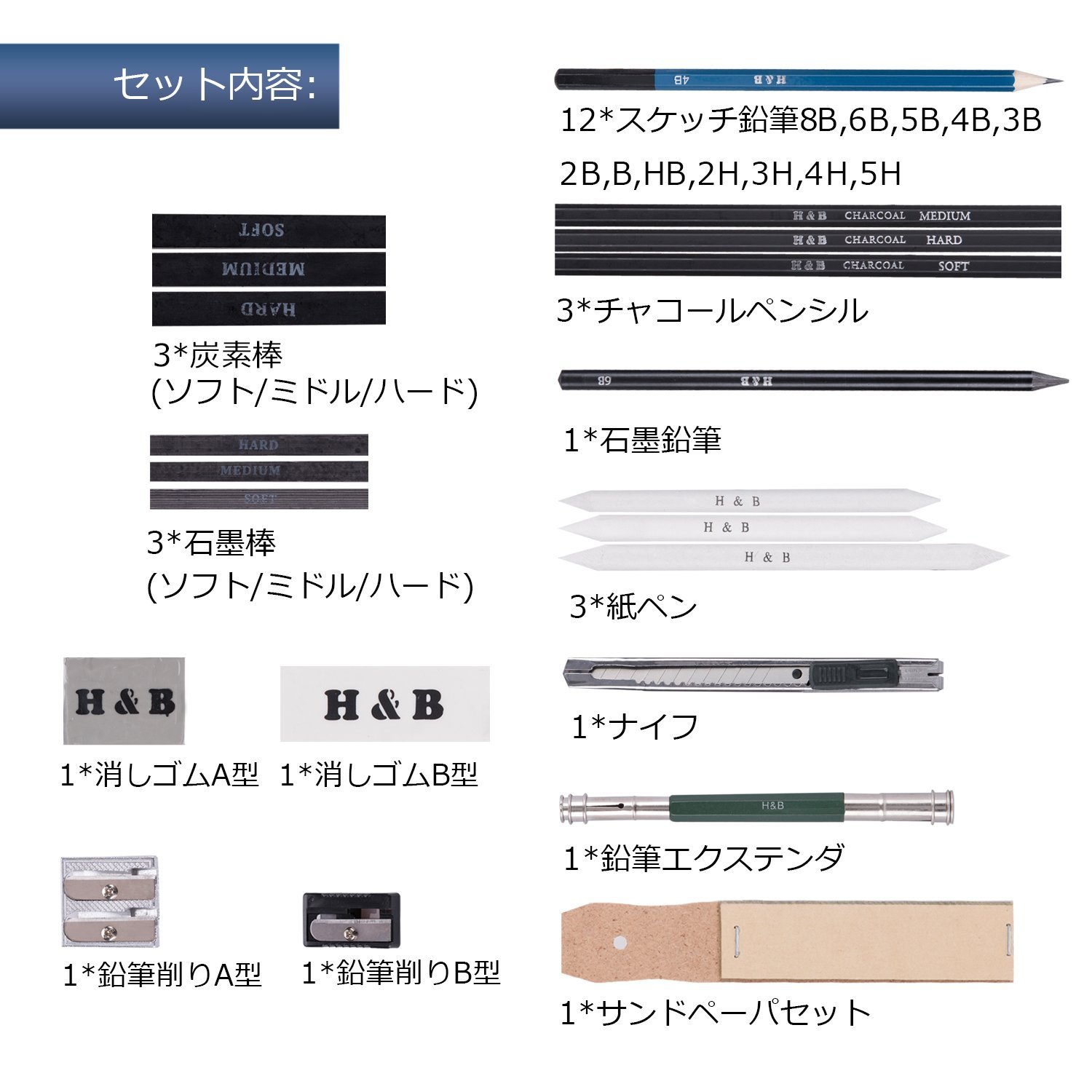 12 * Sketch pencil (8 B, 6 B, 5 B, 4 B, 3 B, 2 B, B, HB, 2 H, 3 H, 4 H, 5 H)