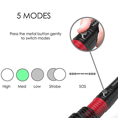 MalloMe Rechargeable Flashlight Kit Includes: ? 1 x Ultra Bright, Zoomable, Adjustable Focus Tactical LED Flashlight ? 1 x AAA Battery Holder ? 1 x?Color Box Packaging ? 1 x User Manual
