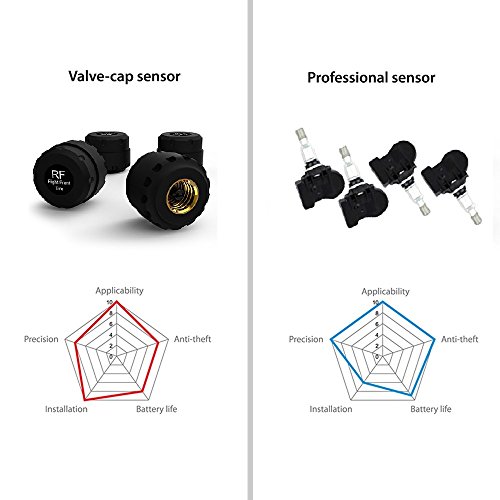 DO YOU KNOW ? 20% under-inflation reduces tire lifetime by 30%; 30% over-inflation reduces tire lifetime by 45%; 30% pressure lower looks like proper inflated tire So you need a CARCHET TPMS(Tire Pressure Monitoring System)to monitor tire dynamic pressure, warn early of abnormal tire pressure, improve fuel efficiency, increase tire life and traffic safety. Measure Range: ●Measurable range of sensor: 0~116 PSI ●Displayable range for monitor: 0~99 PSI ●Default alarm value: 29-44 PSI (can be customized). Tire pressure above or below the value range will trigger alarm. ●Sensor signal distance: within 8 meters (26 ft) the signal is clear. Beyond this range, the signal becomes unstable. Beyond 10 meters (33 ft), there's no signal.
