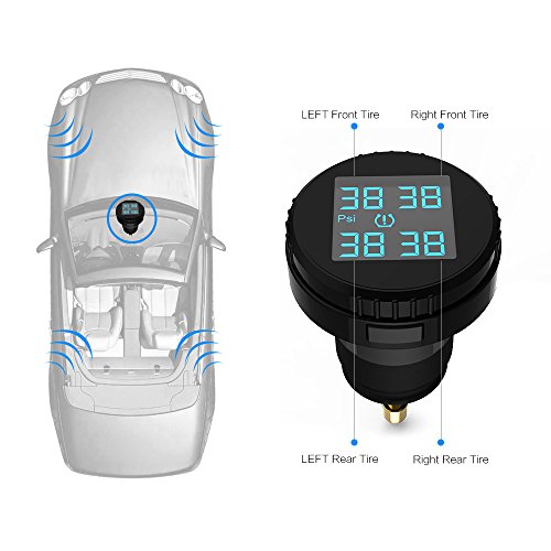 Product Specifics: ●LCD color screen(size: 17 x 17mm) ●Valve diameter: 7mm ●Pressure Units: BAR / PSI ●Temperature unit: C ●It can display the pressure or temperature of 4 tires. ●Alarm in two ways: indicator and voice, when it alarms, the indicator on screen is red. ●Temperature and pressure exceeded alarm, emergency air leakage alarm. ●Wireless connection on cigarette lighter (DC 12V). ●4 external sensors with replaceable batteries (one CR1632 battery for each sensor) Note: The monitor has no battery and it should be connected to cigarette lighter when you are using it. Package Contains: 1 x Receiver 4 x Sensor 2 x Wrench 1 x Hexagon nut wrench 4 x Hexagon nut 4 x Waterproof Rubber ring 1 x English instruction manual 0