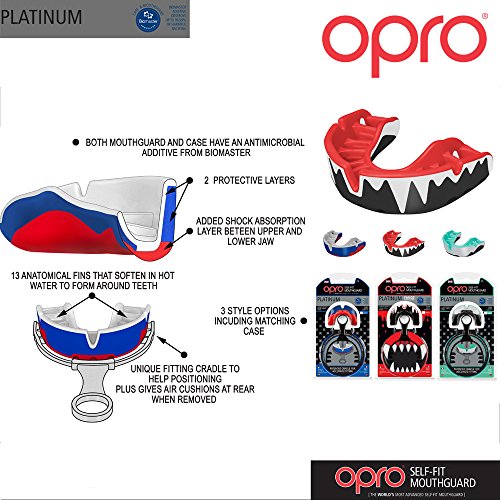 OPRO Pro Adult Mouth Guard - Moldable Dental Platinum Level Mouthpiece for UFC, Lacrosse, Basketball, American Football, Kickboxing, Rugby, Hockey, Boxing - Ages 10+ With $12,000 Dental Warranty