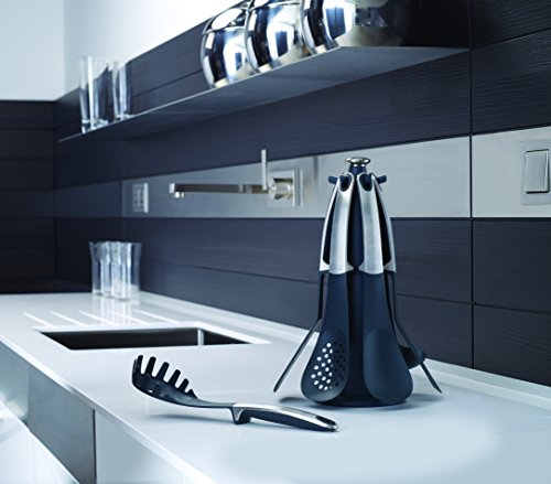 -. Title : Joseph Joseph Elevate 100 Collection 6-Piece Kitchen Utensil Set with Rotating Storage Carousel, Stainless Steel Handles and Nylon Head