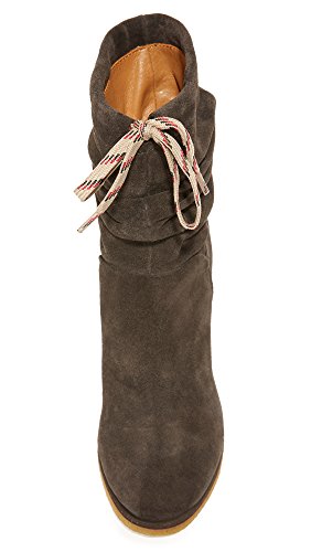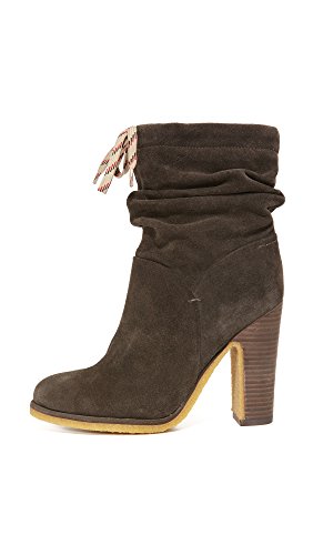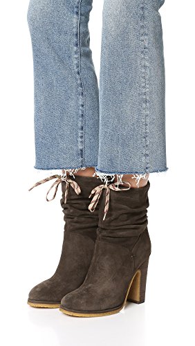 Smooth suede See by Chloé boots styled with a slouchy cuff. Ties at the top line. Stacked heel and crepe sole.