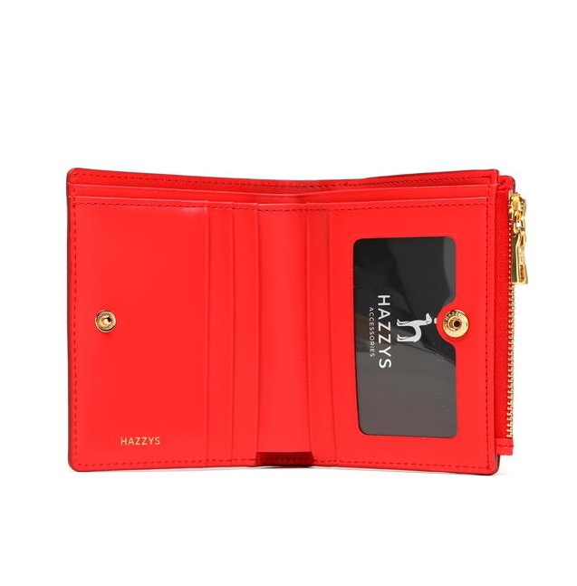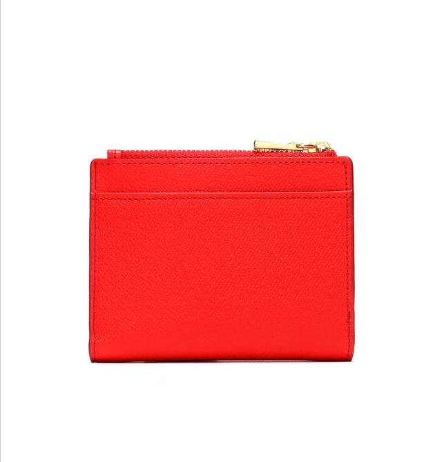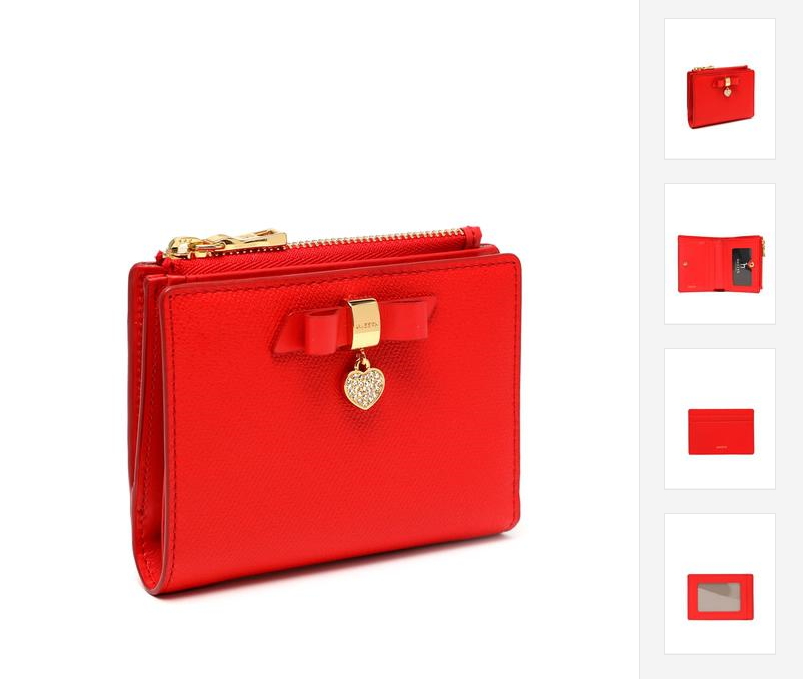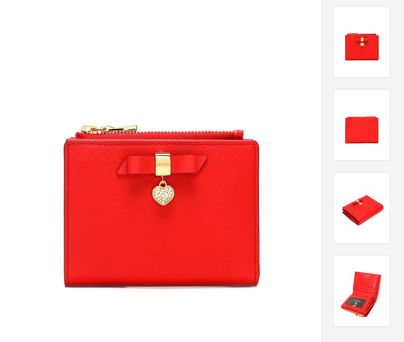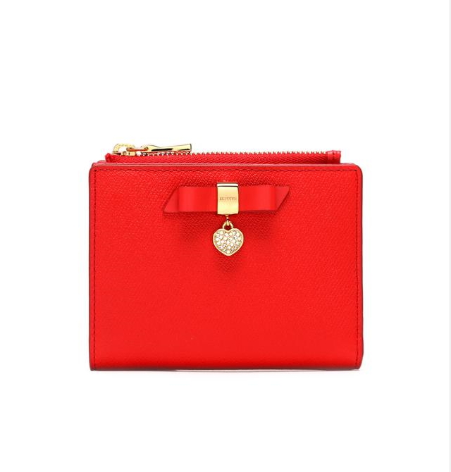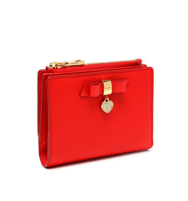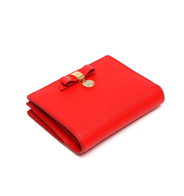 부드러운 사피아노 소가죽 소재로 상단 중앙에 리본 참장식으로 포인트를 준 2단 반지갑입니다.