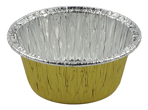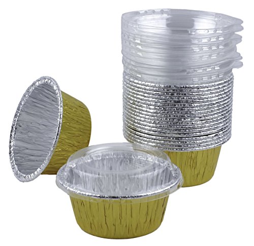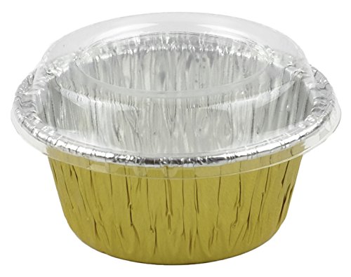 Aliminum Foil 3 1/2 (Gold) Ramekin Utility Cup 4 oz. for Cupcake & Muffin With Lid 20 Sets