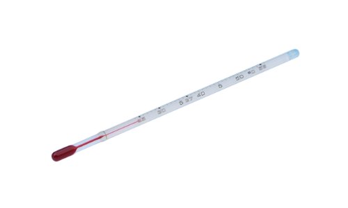 Thermco ACC2457SSC Spirit Filled Thermometer for Incubators and Water Baths, Safety Coated, 25-37-56°C Range, 76mm Immersion