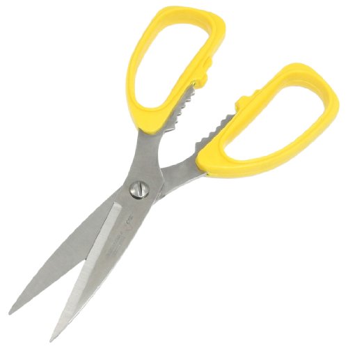 -. Title : uxcell Yellow Handle Stainless Steel Serrated Flat Blade Kitchen Scissors