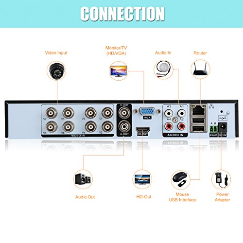 -. Feature : Support P2P technology, the CCTV DVR can be linked through the internet without any complicated port mapping. / 960H 1000TVL high resolution camera with IR LEDs and IR-CUT filter provides true color high definition clear and accurate video footage image both day&night / Excellent material of metal shell ensure its waterproof and vandalproof provide you a convenient and safe life / Backup Via USB Drive. Remotely activate and View Via the Internet from anywhere and anytime / Support motion detection,send alarm information Email,8 channel simultaneous live viewing via smart phone,capture and record,Cloud System For Remote Access/HDMI Output