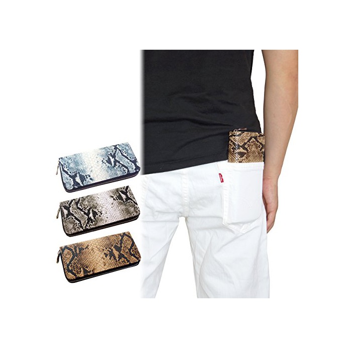 원본상품명: パイソン柄プリント 型押し フェイクレザ ラウンドファスナ 長財布 メンズ cross-wallet050 (ブラウン)