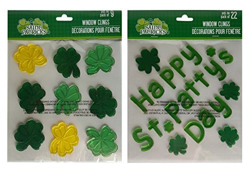 St Patrick's Day Window Decorations Gel Clings Set of Two Sheets Total 31 Stickers