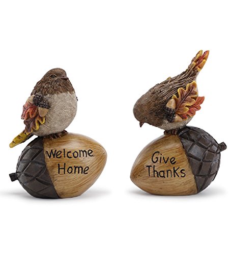 Welcome Home Give Thanks Birds on Acorns 5 Inch Resin Tabletop Figurines Set of 2