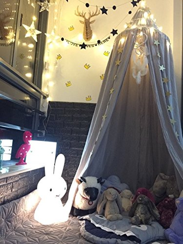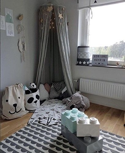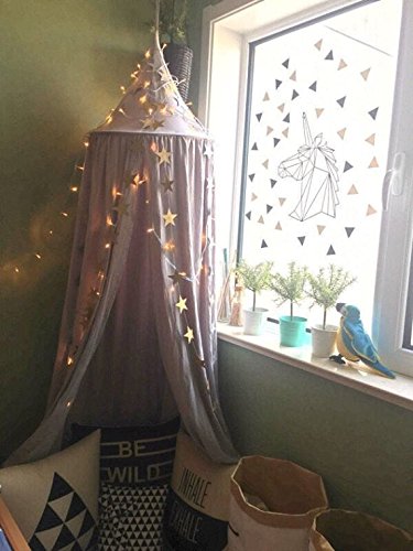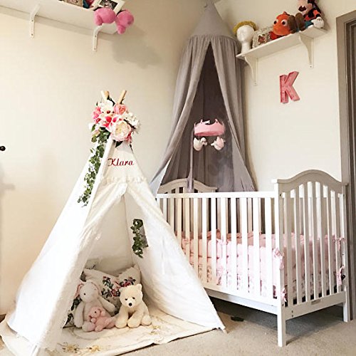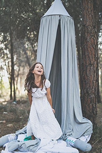 -. Feature : 220cm(87") high, 50cm(20") diameter on top, 290cm(114'') around the bottom. / Material: Cotton Linen. Fit for playpens, bassinets, cribs, smaller beds, etc.Easy to install, includes a suspension system which hangs from one point in the ceiling / Children's Room Decoration. Perfect for a little girl or boy room or bedroom makeover, with hanging ring in the middle, flanking the floor, it can be an ideal playground for kids in combination with a round quilting mat, nice and functional. / You can hang some nightlight on a piece of playing position and give some baby pillow toys,your little lover would love it! Mounts quickly with included hardware. A simple yet luxurious addition to your decorating scheme. Just hang it up and in minutes you'll add class, glamour, and the illusion of added height to any room. / It has so many uses but not just over beds! Take it travelling and camping. Create a cosy reading nook, decorate it with fairy lights, or add a mobile and hang over a baby's crib. Use it to protect cake tables at outdoor celebrations or weddings or as a photography prop. Create a gift tent at a birthday party or add a whimsical touch to backyard or poolside parties. Indoors or outdoors - the uses are positively endless!