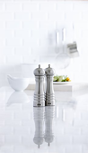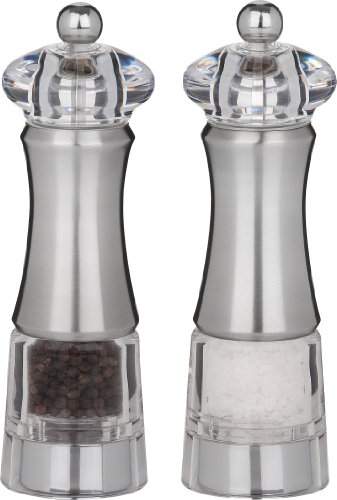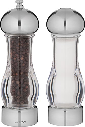 • 8-inch pepper and salt mill set for professional or home use in stainless steel and acrylic