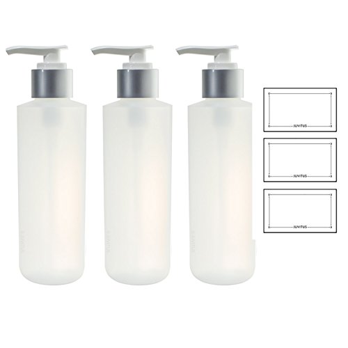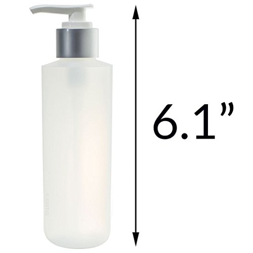 Clear Natural Refillable Plastic Squeeze Bottle with Silver Pump Dispenser - 6 oz (3 Pack) + Labels