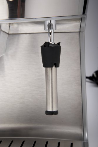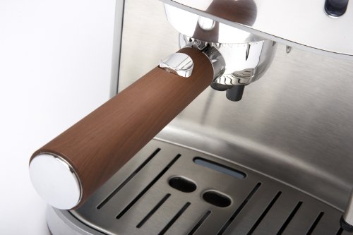 -. Feature : Pump espresso machine with exclusive design of stainless steel, chrome and wood optics / Patented KRUPS Precise Tamp System for uniform tamping and even flavor extraction; programmable auto flow-stop system / Thermoblock system with 15-bar pump for faster preheating and reduced limescale build up / Multi directional frothing nozzle creates delicious cappuccinos and lattes / Universal filter holder accommodates ground coffee, E.S.E. pods, and soft pods; mess-free cake-ejection system; measuring spoon included; 1450 watts; 2-year worldwide warranty