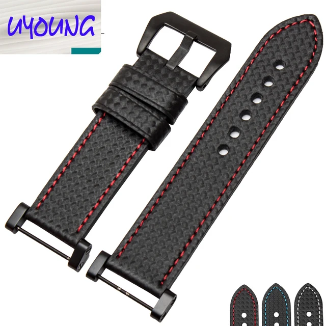 [해외]24 미리메터 높은 품질 정품 가죽 시계 스트랩 탄소 섬유 곡물 순토 코어 필수 무료 배송