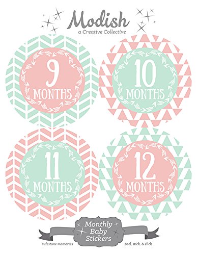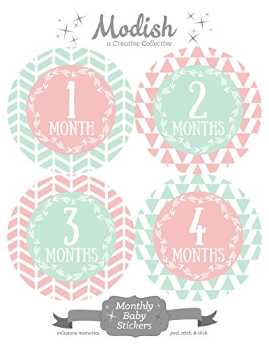 12 Monthly Baby Stickers, Mint, Pink, Girl, Baby Belly Stickers, Baby Month Stickers, First Year Stickers Months 1-12, Mint, Pink, Arrows,...
