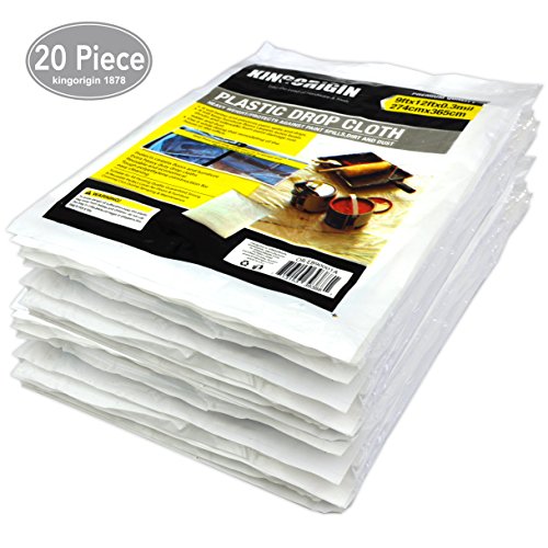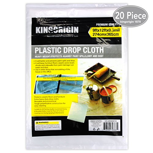 KINGORIGIN 20 Piece,Drop Cloth ,Plastic drop cloth, for paint roller, 9x12Feet
