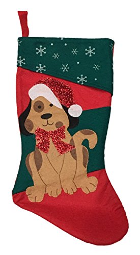 - Adorable 19 inch felt applique green and red stockings with either Cat or Dog on front