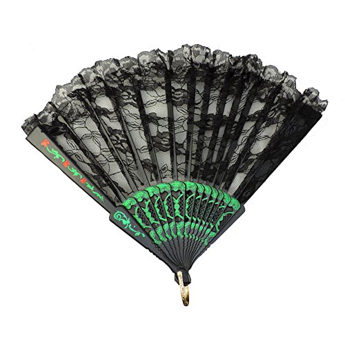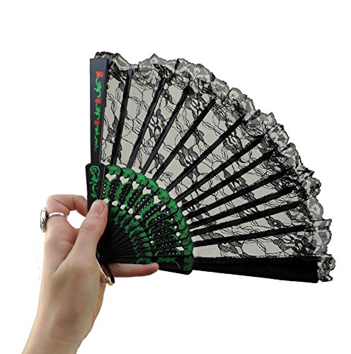 -. Brand : Loftus International -. Color : Black -. Department : unisex-adult -. EAN : 0791082452886 -. Feature : Victorian Lace Costume Fan / Measures 9" Long / Sulty Black Lace w/ Red & Green Rose Embellishments / Attached Ring For Easy Costume Carry / 17" Extended Span (End To End When Open) -. PackageQuantity : 1 -. ProductGroup : Apparel -. ProductTypeName : ADULT_COSTUME -. Size : One Size -. Title : Victorian Ladies Black & Green Rose Lace 9" Costume Fan