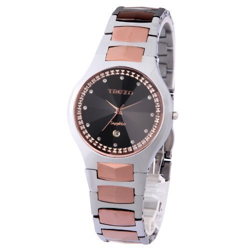 TIME100 Diamond Tungsten Steel Black&Coffee Round Dial Sapphire Mirror Couple Watch(For Men) #W50107G.02A