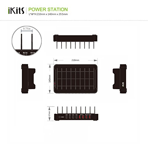 - Title : iKits (CE/FCC Verified) 8-Port USB Charging Station Dock,4 Port Fast Charging+4 Port 5V 1A, with Smart IC Technology for iPhone/ iPad & More Black