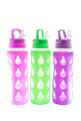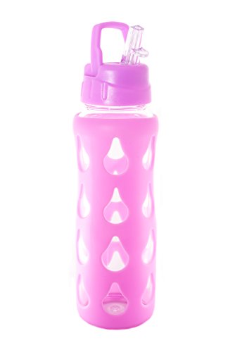 Everything4Oils 22oz Glass Water Bottle with Silicone 'Drop'-Patterned Shell (PURPLE)