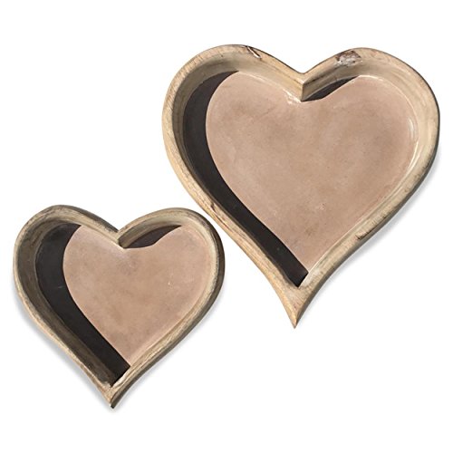 The Farmer's Market Heart Shaped Trays, Set of 2, Artisan Crafted, Mango Wood, White Washed And Hand Rubbed, 13 3/4 and 9 3/4 Inches, By Whole House Worlds