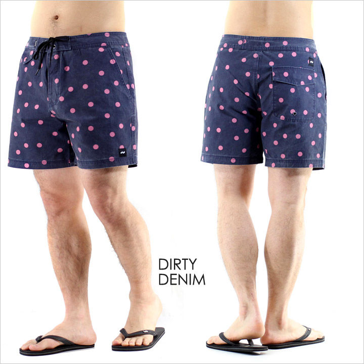 ワンウォッシュされたような風合いのあるドット柄生地が好印象な水陸両用ボードショーツ。