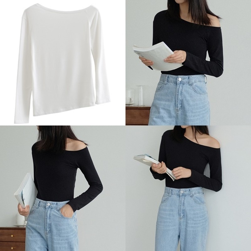 片方だけ肩出ししてちょいセクシーなロンT♡