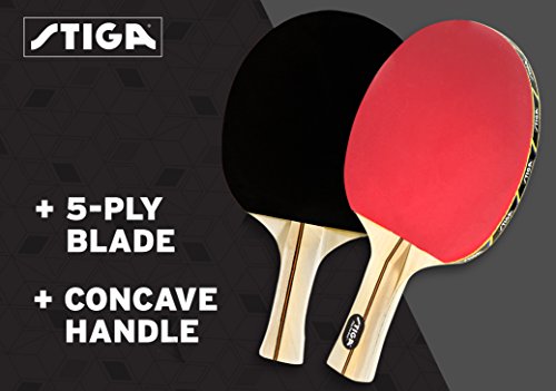 StigaPerformance4-PlayerTableTennisSetenablesyoutoplayadoublesmatch.Theracketsfeatureaunique1mmspongewitha5-plybladeandaconcavehandle.Thepipsareinvertedforenhancedballcontrolandaddedspin.Theracketsoffertheadequateamountofgive、improvingthespinsandserves.Alsoincludedinthissetare40mmballsforyoutoenjoytabletennisbetter.Theballshavea3-starrating、whichmakethemaptforofficialcompetition。