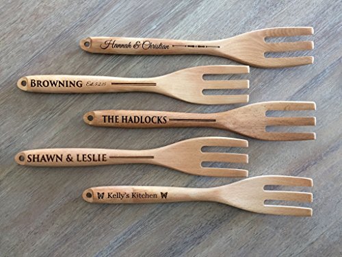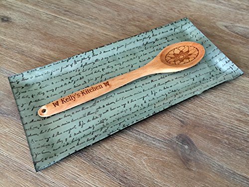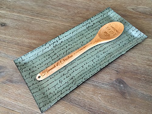 -. Feature : The long spoon will be customized according to your specifications. (1) Choose the product and the design. (2) Click Customize Now button. (3) Type in the personalization info. / These have a convenient hole at the tip, perfect for hanging anywhere you wish to add a touch of personalization and class to your kitchen. / Each measures 12 1/4" long, approximately 2 1/2" wide on the bottom, and 1" wide at the handle. / The custom spoon/fork decoration is perfect as a birthday, anniversary, housewarming, wedding, shower or Easter gift. / The decorative utensil can also be unique party favors that you can give away to your guests.