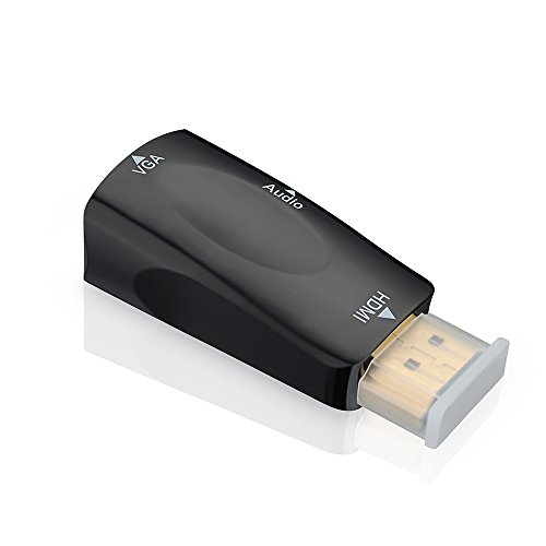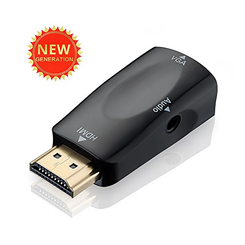 HDMI to VGA Adapter provides an easy and cost-effective solution for connecting notebook or desktop PC to VGA display such as monitor,projector,TV. Simply connect the HDMI male end of the converter into a HDMI connector of notebook or desktop PC and the female end of the adapter to your VGA cable from the display.(VGA cable is not included but it's commonly available in the market). Portable, Compact, Space-saving, Easy to Use. This portable and mini converter is easy to take and plug and play. No complicated installation. Support a Full High Definition Resolution The HDMI to VGA Adapter allows for a connection to VGA monitors and projectors supporting a maximum 1080P resolution. Output Both Audio and Video Signal With VGA female port and 3.5mm audio port, you can connect to your new NoteBook,Laptop,HD DVD, HD DV without VGA interface to projector,Display,LCD,TV & Monitor in old model with VGA interface only for big screen viewing, and output audio signal by speaker,headphone,amplifier and other device with 3.5mm audio port. Specifications: Color: Black Input: HDMI Male Output: VGA Female Support Resolutions: 480i/480p/576i/576p/800x600/720i/720p/1280x1024/1600x1200/1080i/1080p Audio Support: Yes. Important Notes: 1. DO NOT support Blue-ray discs, PS3, PS4 2. This is NOT a bi-directional converter. It only transfers signal from HDMI to VGA. 3. A VGA cable is required when you connect this converter to devices with VGA port such as monitors, projectors.(VGA cable is not included but it's commonly available in the market.) Package Contents: 1x HDMI to VGA converter 1x 3.5mm Audio Cable Warranty:45 days money-back and 12-month,worry-free Guarantee!