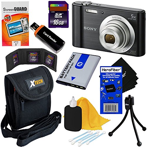Sony Cyber-shot DSC-W800 20.1 MP Digital Camera with 5x Zoom and Full HD 720p Video (Black) - International Version + NP-BN1 Battery + 8pc 16GB Accessory Kit w/ HeroFiber Ultra Gentle Cleaning Cloth