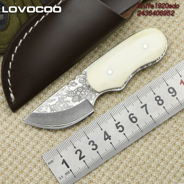 | [해외] LOVOCOO 수제 JEEPPIGN 다마스커스 나이프 뼈 핸들 고정 블레이드 야외 전술 생존 사냥 도구 나이프 |