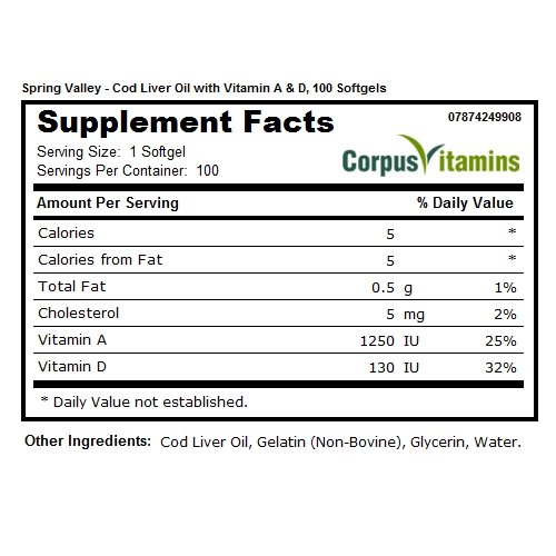 Spring Valley - Cod Liver Oil with Vitamin A & D 100 softgels