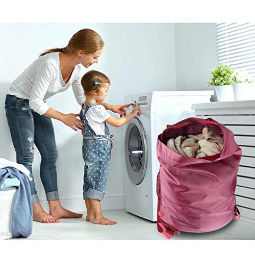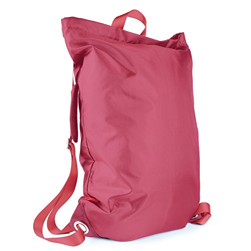 Hanging Laundry Bag?30”X23”?, VDS Carry Handy Laundry Backpack with Adjustable Shoulder Straps Durable Nylon Carry Clothes Bag Laundromat Bag for College Apartment Dorm Gym Sports Camping Bag(Red)