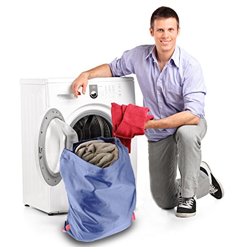 Carry Handy Laundry Bag ?30”X23”?, VDS Hanging Laundry Backpack with Adjustable Shoulder Straps Durable Nylon Laundry Washing Backpack for College Students Apartment Dorm Laundry(Blue)