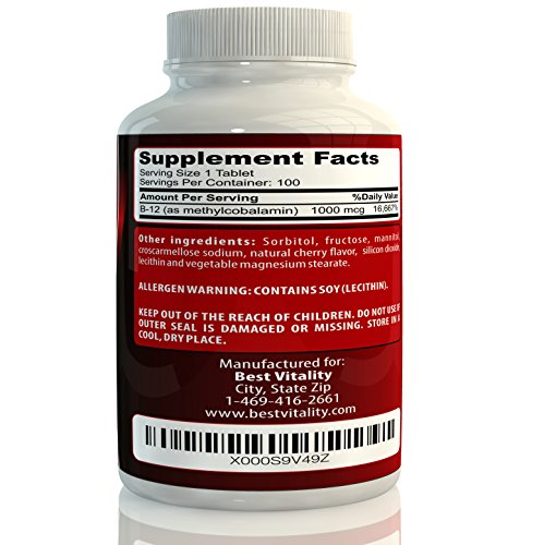 Feel Great: When you start using your Natural B 12 1000 you will quickly notice your energy levels increase. Methyl B-12 is better absorbed and retained than other forms of B12. Methyl B12 1000 fast dissolve delivers high potency energy support delicious cherry tablet essential for healthy blood cells contributes to the health of the nervous system.