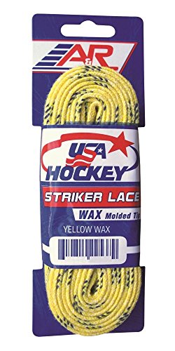 New AR Dozen (12) Pair USA Hockey Striker Waxed Molded Tip Skate Laces Yellow