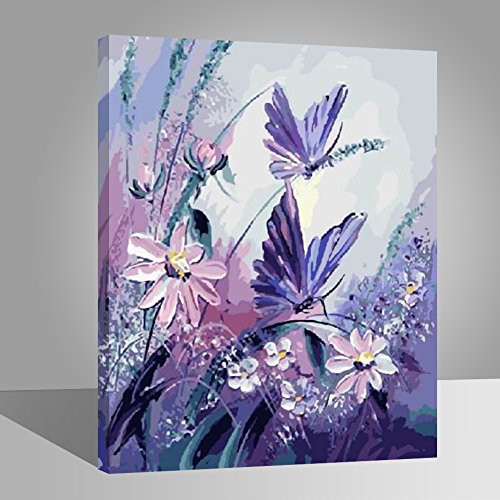 -. Title : Rihe DIY Oil Painting Paint By Number Kit-Butterfly with Purple Flower 16x20 Inch