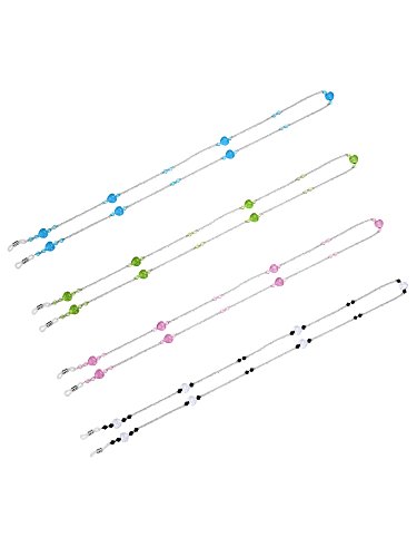 Features: Design of loops: The ends of each eyeglasses straps have silicone loops, which is adjustable, can control the tightness of the silicone hoops to fit your eyeglasses easily. Wide application: They fit for eye glasses, reading glasses, sunglasses and so on, also suitable for hiking, traveling, outdoor and indoor activities and so on, can keep your glasses firm and safe, very convenient to use, besides, they also can serve as accessories for clothes with beautiful appearance. Specifications: Length: approx. 75 cm/ 29.5 inches Cord material: acrylic, metal wire Loop material: silicone Color: pink, white, blue and green Quantity: 4 pieces Package includes: 4 x Eyeglass strap (4 different colors) 0
