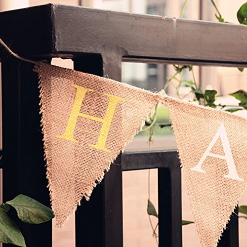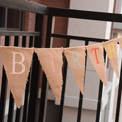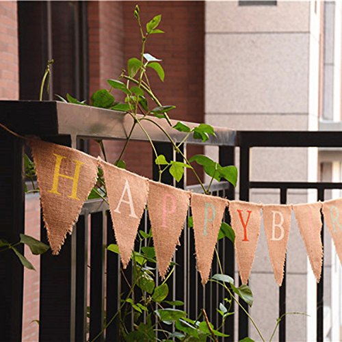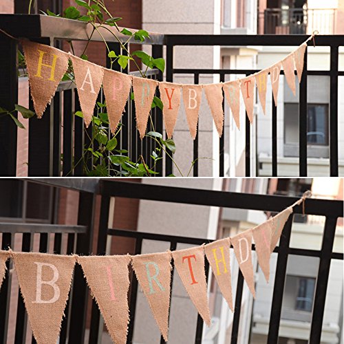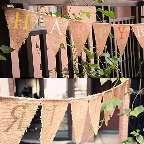 "HAPPY BIRTHDAY" Printed Linen Bunting 3.2M/10Feet Flag Banner Pennant Flag Garlands Fabric Triangle Flags Double Sided Vintage Cloth Shabby Chic...