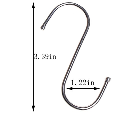 Applications: - Kitchen utensil: such as aprons, hot pads, spoons - Closet organizatin: hanging your purses,lint roller,hats, bags,clothes - Shower room: hanging shampoos, soaps, body cleansers, razor and more through the baskets or shower bag. - Gardening: hanging plants, bird-feeders, and garden decorations. Save space in your hme; Organize your kitchen space like a pro chef by hanging your pots, pans, kitchen utensils, towels, closet rod and etc. With their quick installation and easy-gliding mechanism, can be applied to organize such cooking utensils as pots, pans, mops, spoons to save to make kitchen organized. Made of durable anti-rust stainless steel and they won't scratch any surface because of the double ball end. Perfectly for all you needs. Package includes: 10pcs ×S-shaped metal hangers hooks