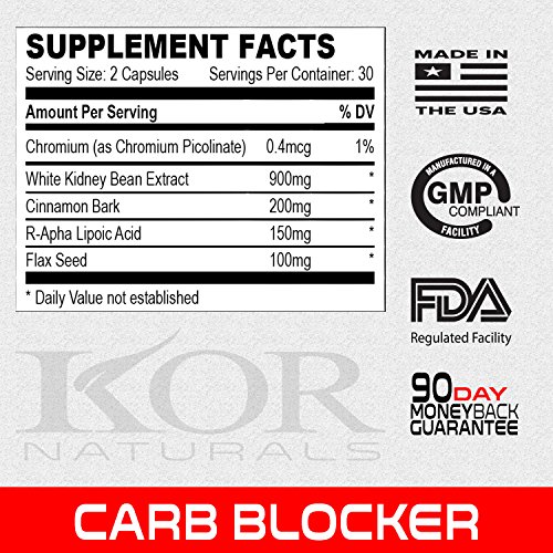 WHY KOR NATURALS? More than just a supplement company Our Name.. Our Brand... it stands for something. That something is for us to be here... As your Resource... As your Motivation... And to be here to help you celebrate your victories - Proudly based in the USA - GMP certified facility - FDA Regulated Facility - Industry-Leading 90 Day Money Back Guarantee CARB BLOCKER: THE BEST NATURAL CARBOHYDRATE BLOCKER SUPERIOR RESULTS: Our carb blocker was formulated for: - Assist in Carb Blocking - Reduce Bloating - Appetite Control Suppression - "Cheat Meal Aid" A natural carb blocking supplement that uses a powerful formula designed to provide real results for those looking for results. KEY INGREDIENTS for the BEST RESULTS ? Chromium ? White Kidney Bean (900mg) ? Cinnamon Bark ? ALA (Alpha Lipoic Acid) ? Flax Seed 100% GUARANTEED RESULTS Add our Carb Blocking Weight Loss Pills to your cart today. If in 90 days you do not feel that it is cutting it, we'll send you your money back. 0 |