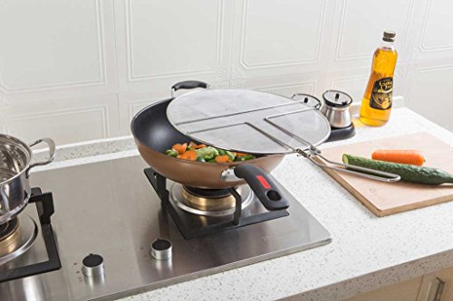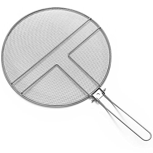 - THE ONLY SKILLET SPLATTER SCREEN WITH A FOLDABLE STAINLESS STEEL HANDLE AND LIFETIME WARRANTY! - You just used the splatter screen to keep your countertops clean, now you can keep it that way! Three perfectly balanced resting feet suspend the dirty screen above your counter so it can stay clean.