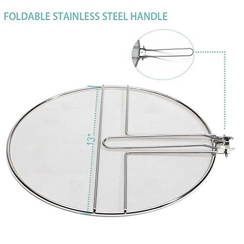 JXJ Stainless Steel Heavy Duty Fine Mesh Splatter Screen With Foldable Stainless Steel Handle- A Premium Grease Guard That Fits Any Pot or Pan and Stops the Splatter, 13" Diameter Splash Guard