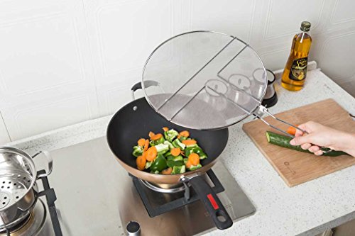 - LARGE UNIVERSAL SIZE WITH MANY USES - The 13 inch fine mesh screen in this splatter guard is the covers most pots, pans, and skillets. Steam your veggies by sitting them on top of the screen and quickly rinse ingredients by using it as a fine mesh strainer! Or, turn your Splash Guard into a cooling rack to cool your cupcakes and cookies.