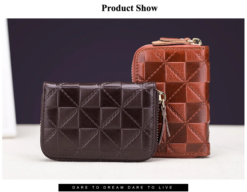 Function 1:Oil Wax Cowhide Leather Female Credit Card Holders portomonee