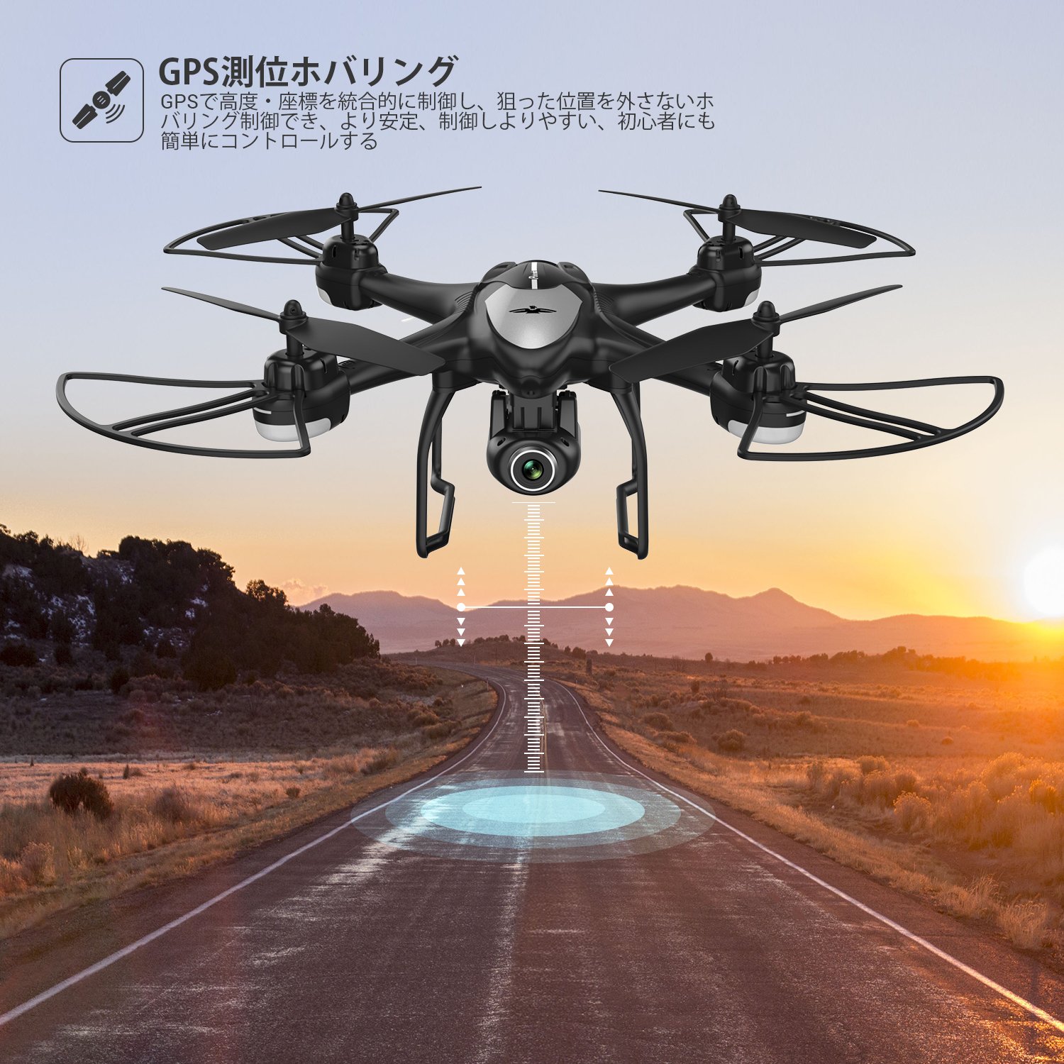 「GPS搭載」気圧センサーによる高度維持機能に加え、アメリカのGPS測位システムとロシアのGLONASS衛星測位デュアルGPSシステムが搭載しGPSで高度・座標を統合的に制御し、狙った位置を外さないホバリング制御でき、より安定、制御しよりやすい、写真や録画には安定性が抜群です